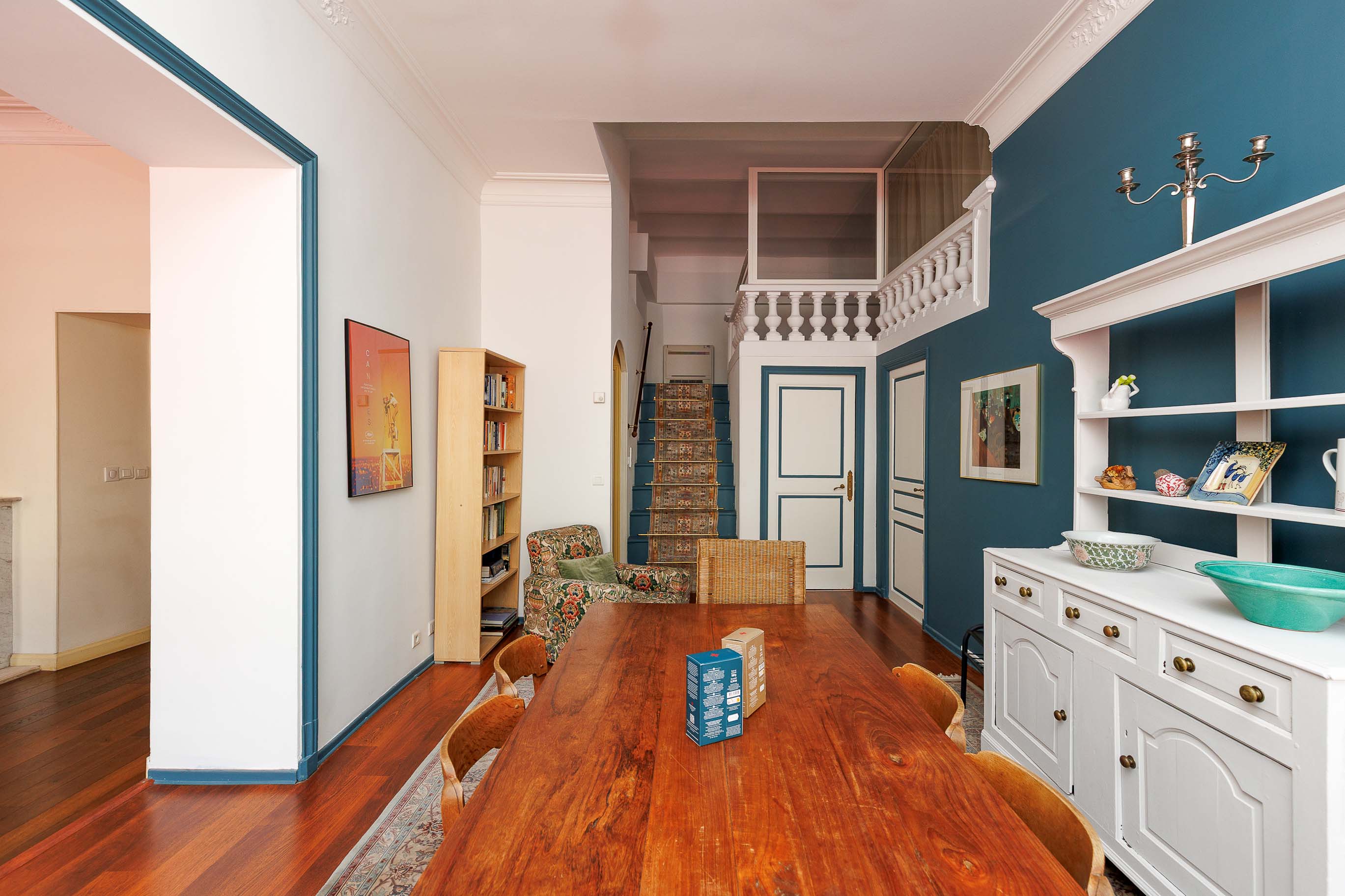 The living room is spacious and has a high ceiling. It is organized around two sofas where you can comfortably exchange family or friends.