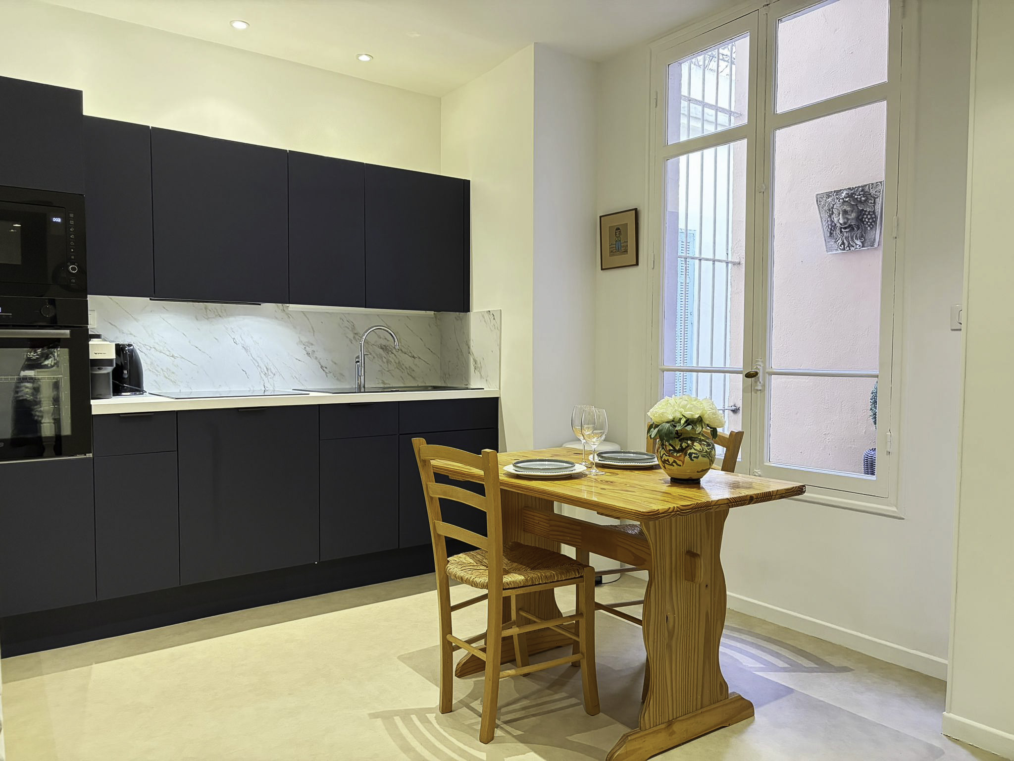 You are in the heart of Cannes, in a small pedestrian street lined with shops and cafes. The apartment is on the 1st floor without elevator. It welcomes you in a warm atmosphere.
