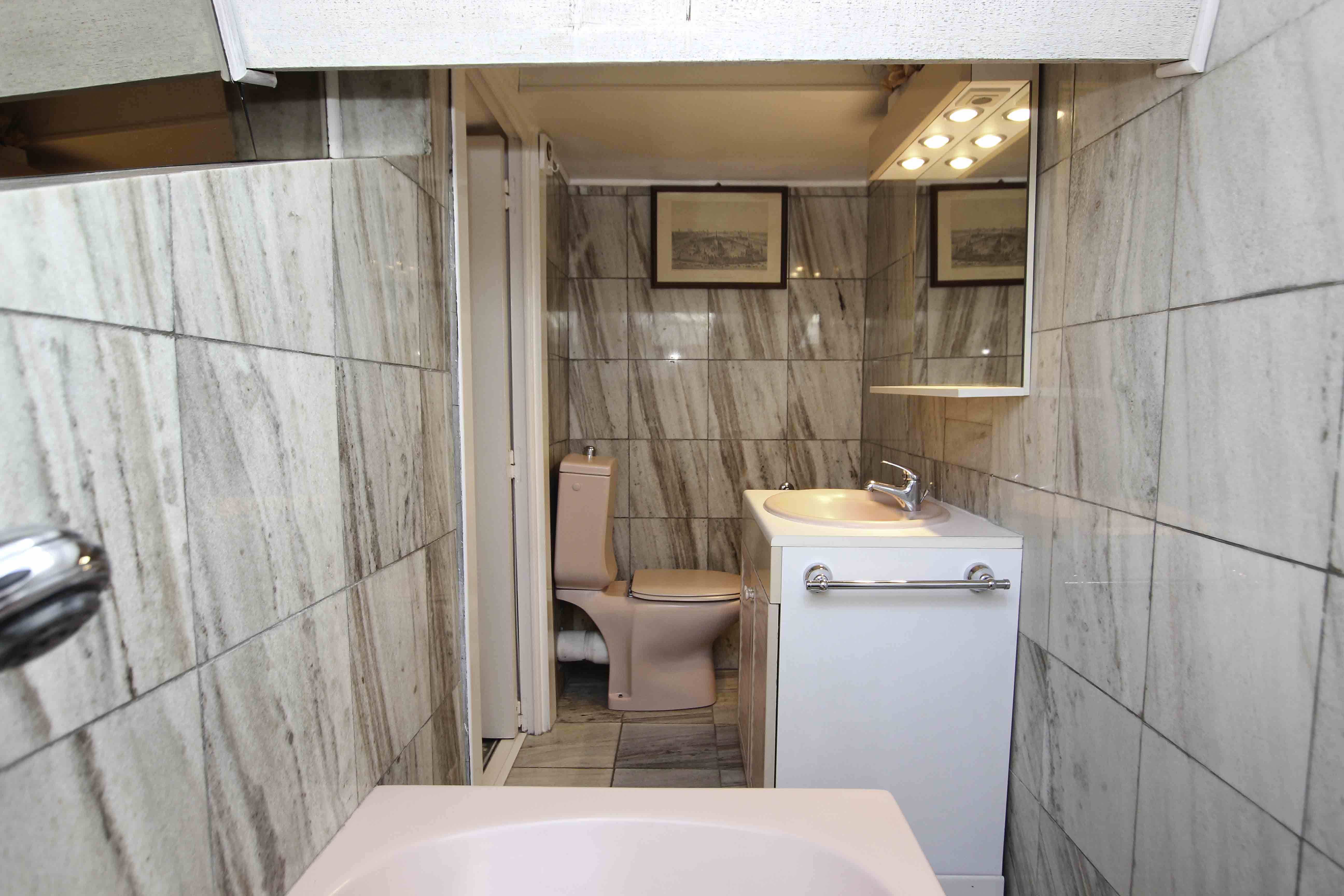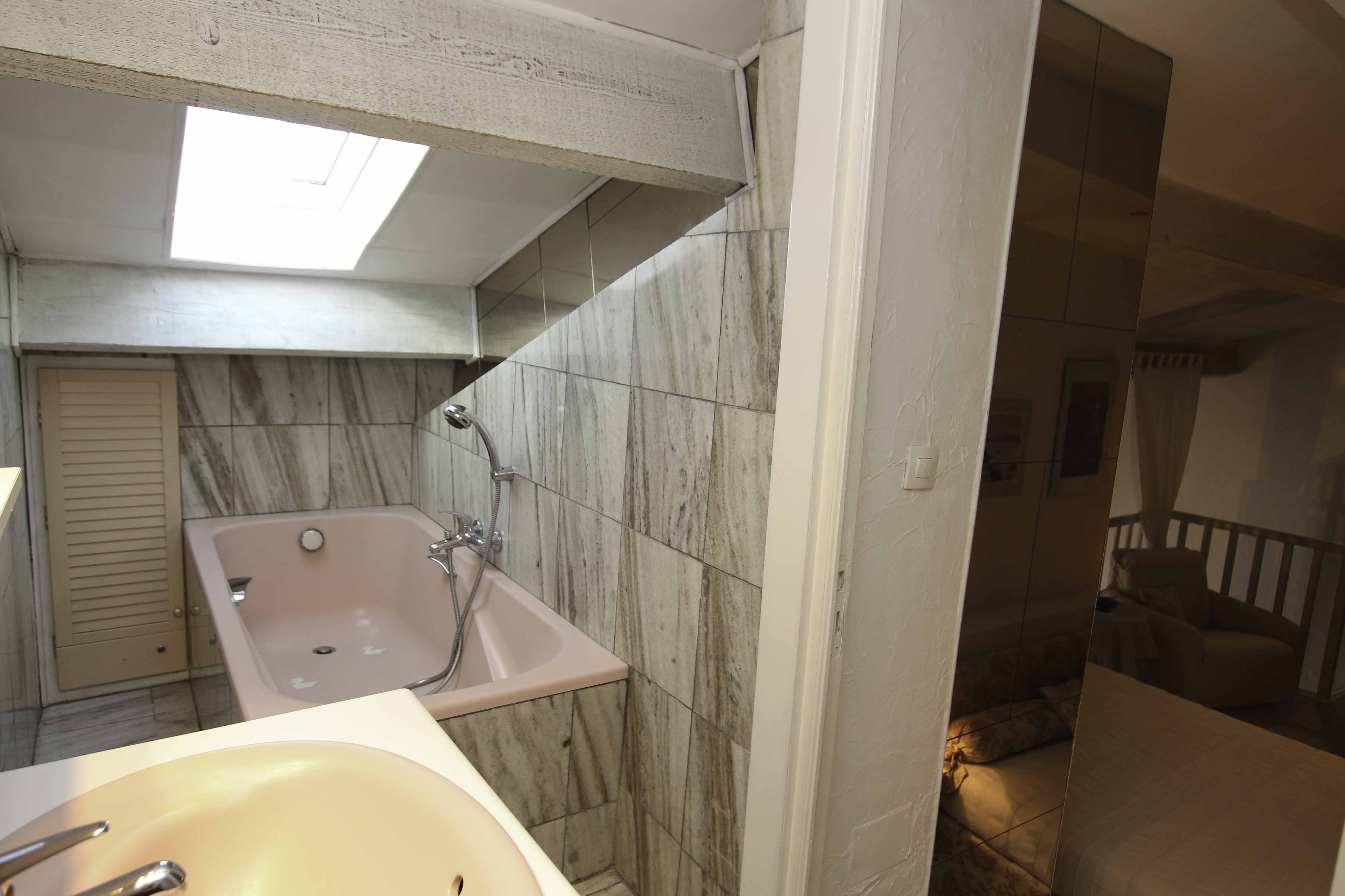 It offers high ceiling in the living room, a sofabed, a well equiped kitchen, a queen size bedroom, a bathroom and a shower-room.