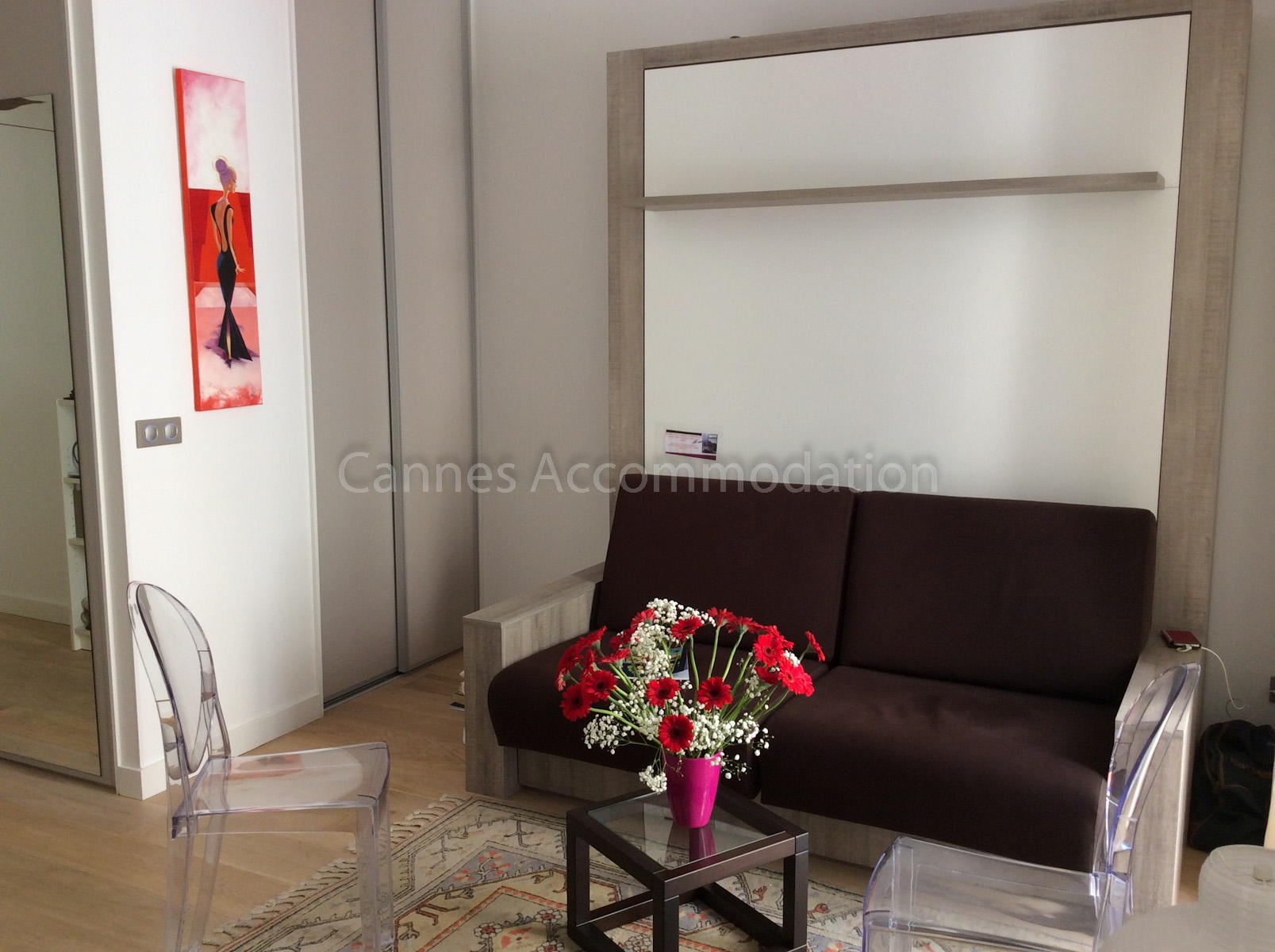 This first-floor studio in a 4-star residence in Cannes is a rare find. Located less than a five-minute walk from the Palais des Festivals and right in the city center, the brand-new building has all the charm of a luxury hotel.