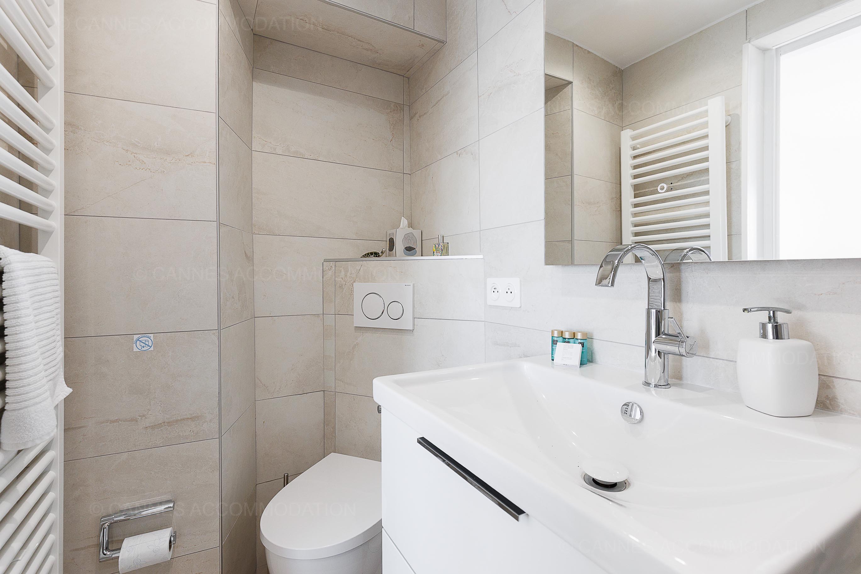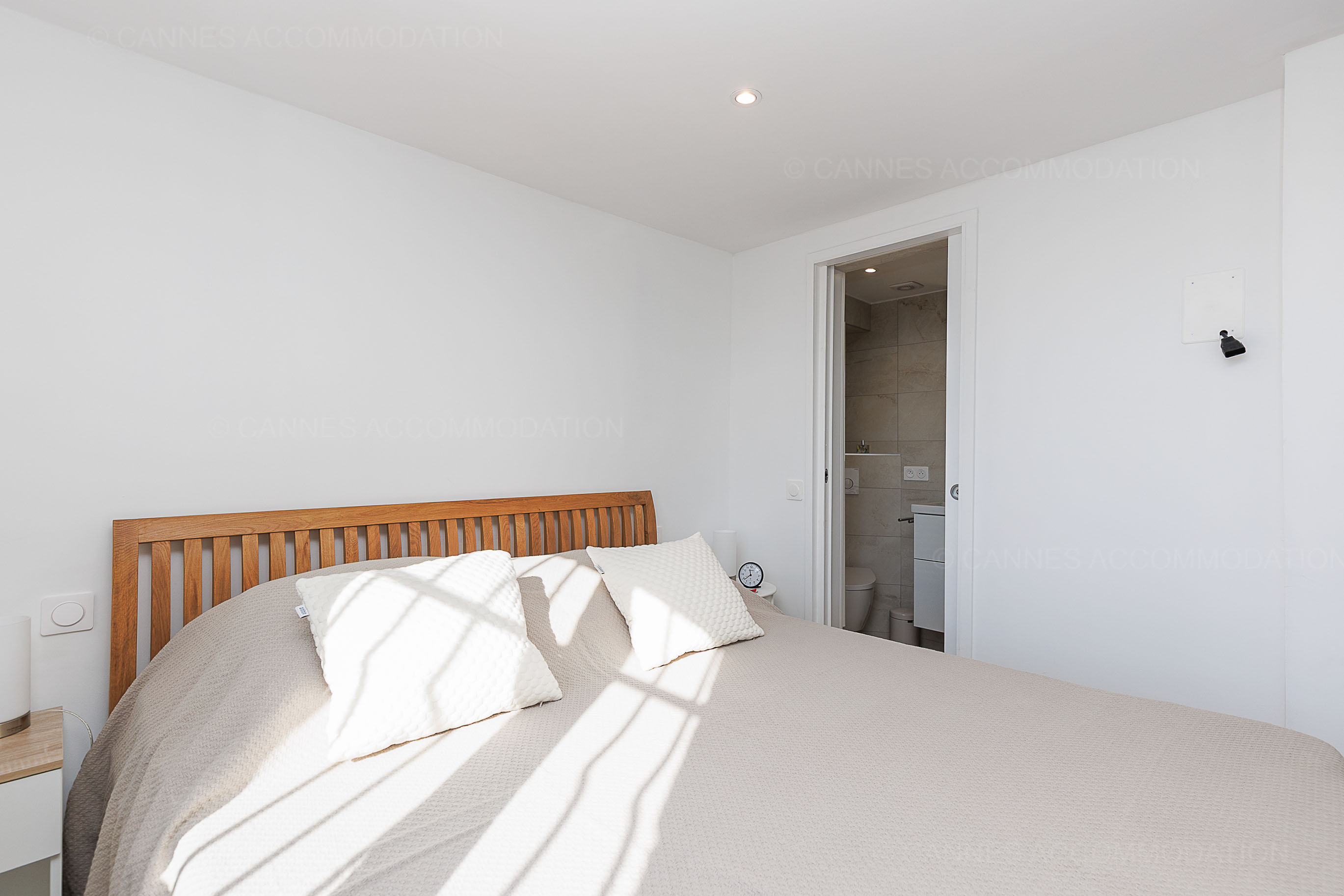 The second bedroom, also featuring a double bed, offers the same comfort with an integrated shower room and private toilet.