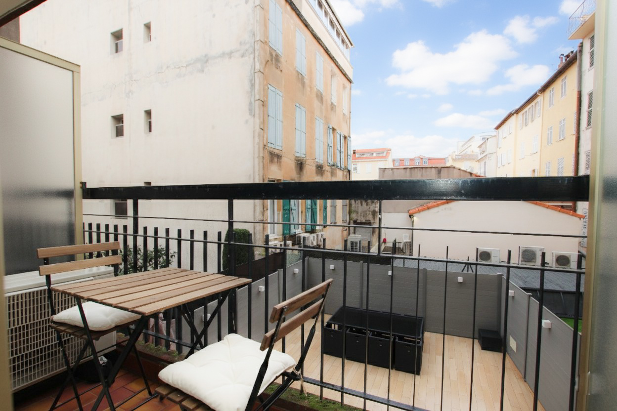 Finally, a lovely balcony completes the property. Overlooking the rooftops and the quieter rear side of the street, it lets you enjoy a peaceful moment outdoors, even when the neighbourhood comes alive in the evening.