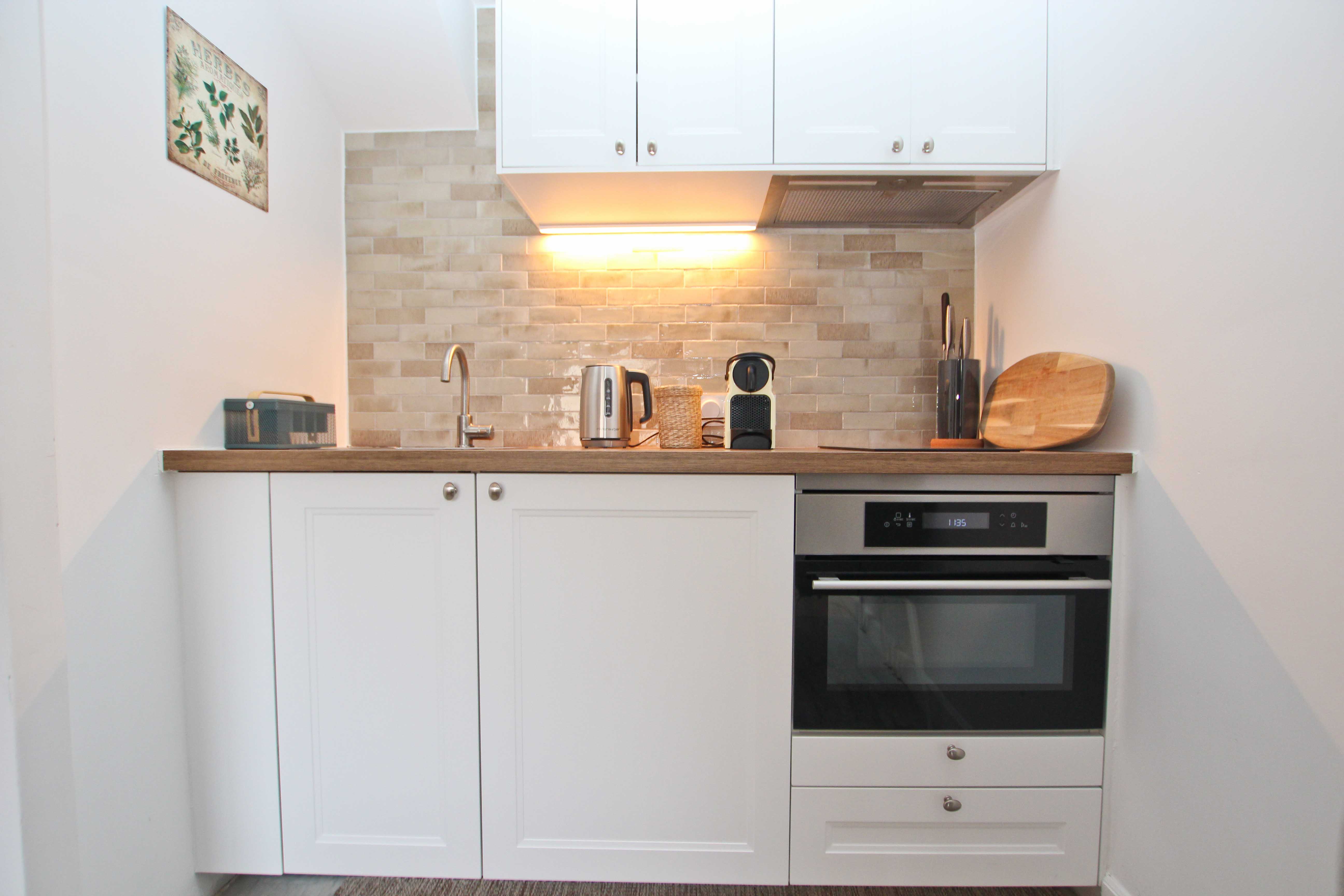 A practical dining area and a well-designed open-plan kitchenette complete the space.