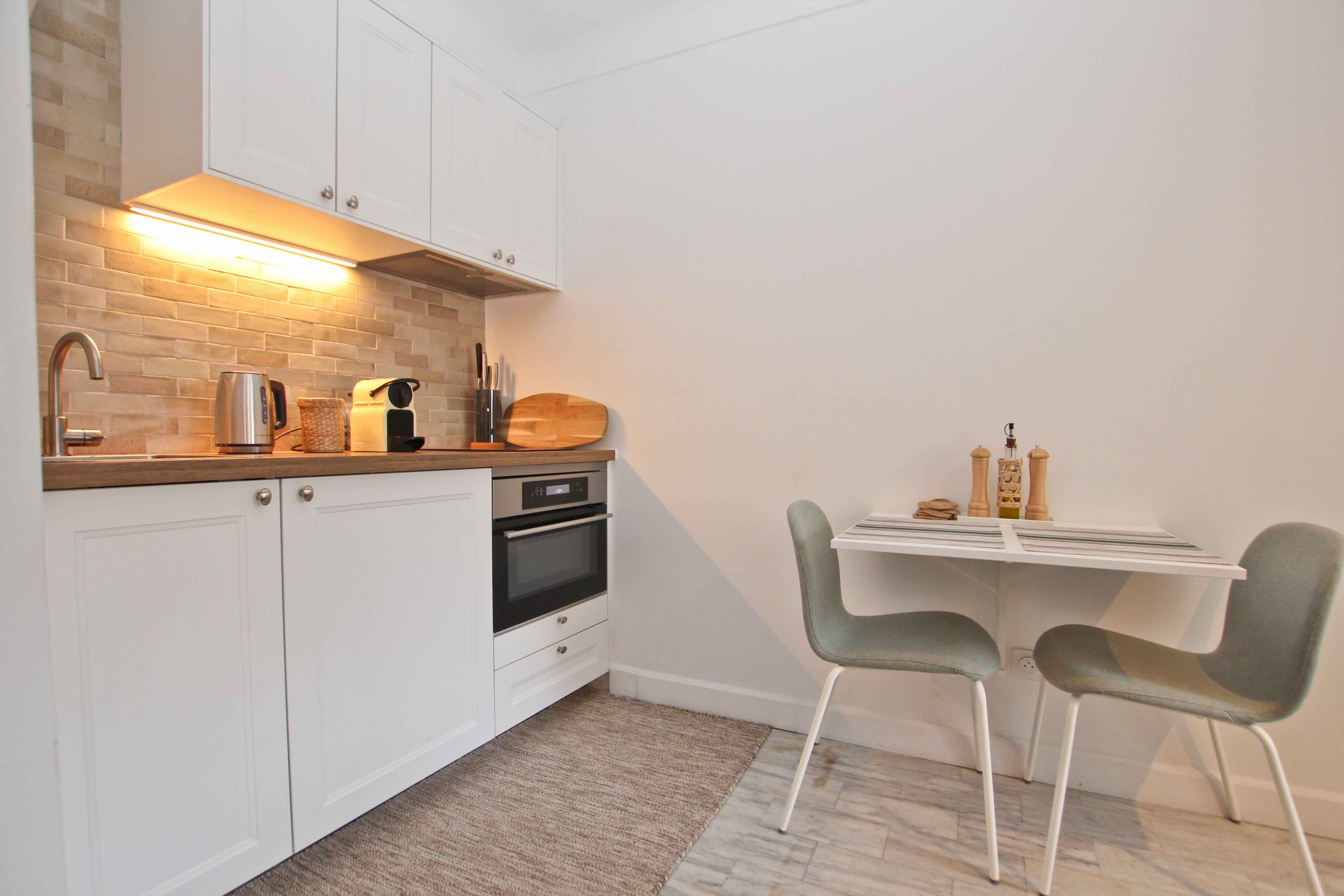 Fully renovated, the apartment features a refined, contemporary décor. The living area includes a real double bed, ensuring excellent comfort even for longer stays no sofa bed here, but a high-quality fixed sleeping arrangement.