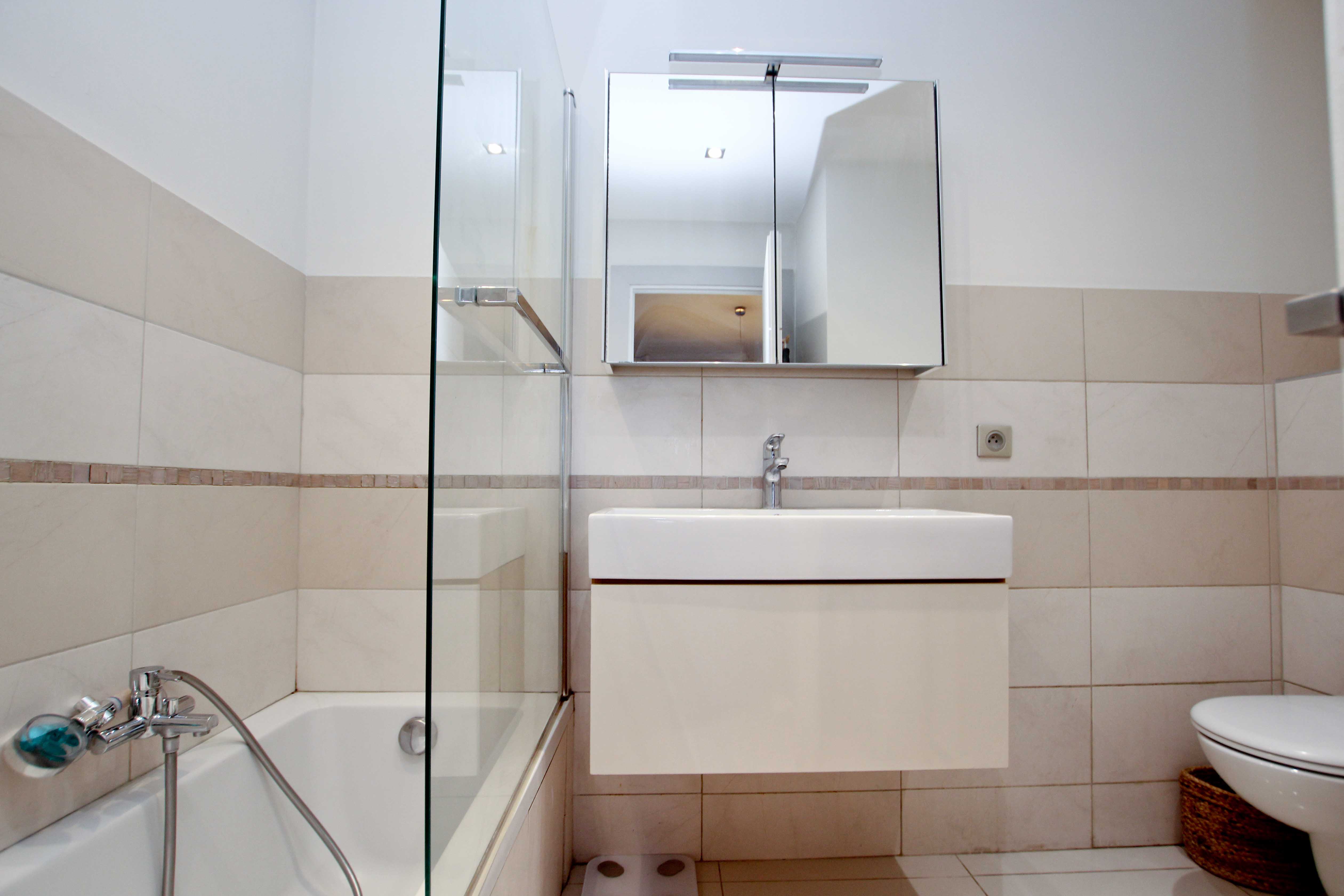 The living room is bright and open, centred around a comfortable lounge area with direct access to the terrace. Large sliding glass doors bring in abundant natural light throughout the day. Air conditioning ensures year-round comfort, in both summer and winter.