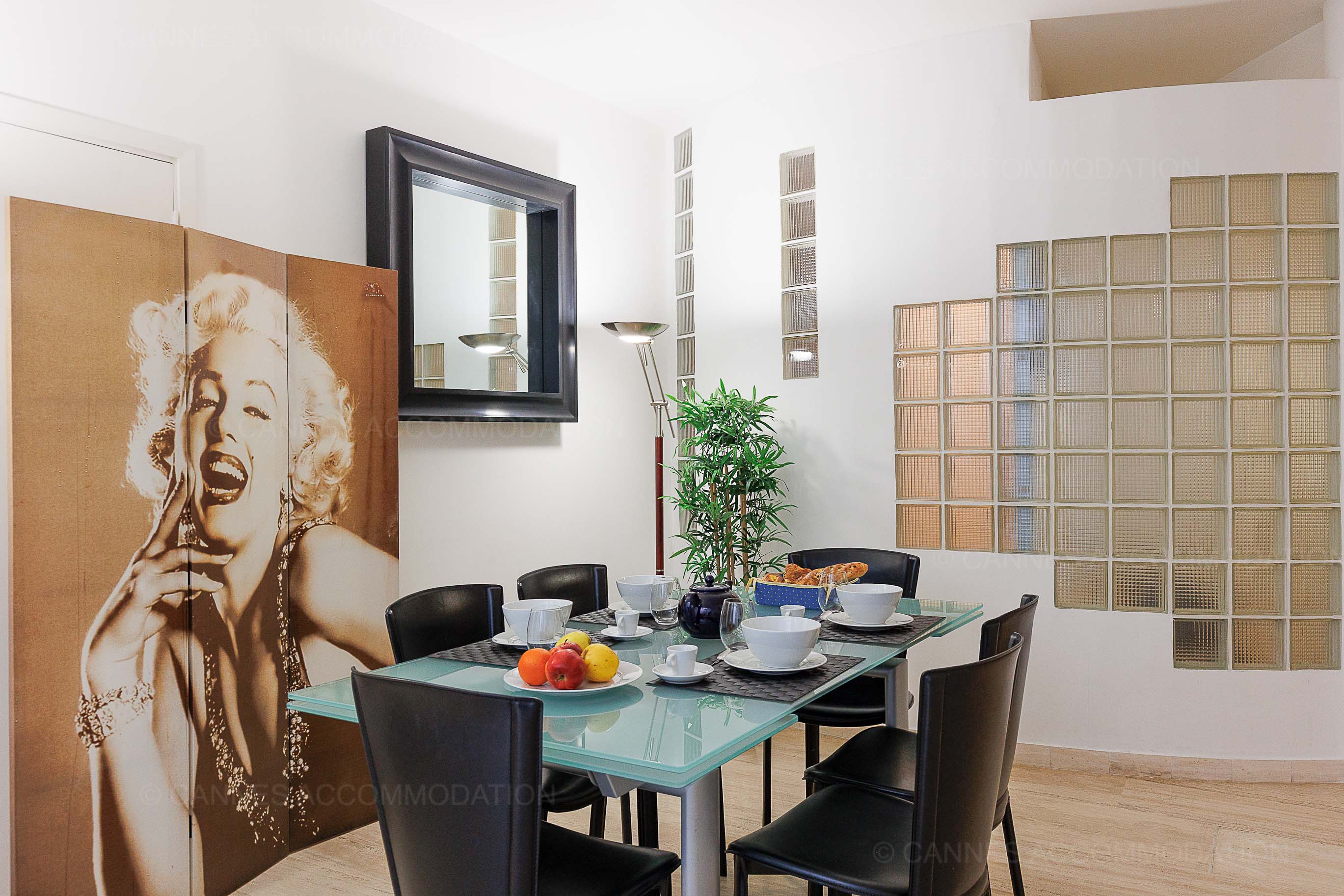 A deux pas du Palais des Festival, une petite résidence calme et bien entretenue abrite ce lumineux quatre pièces.