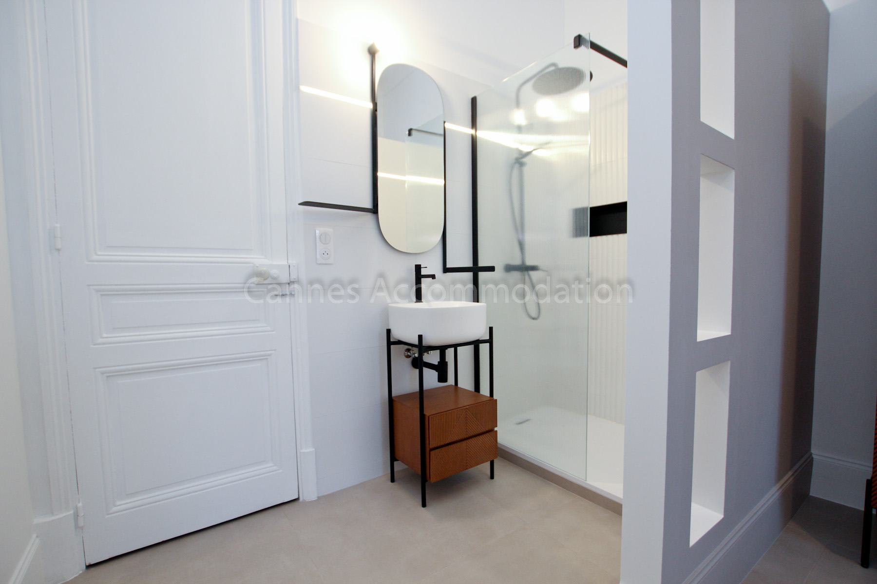 Ce cinq pièces situé sur la rue Felix Faure est tout simplement magnifique. Il se trouve au 2ème étage d’un immeuble bourgeois très bien entretenu, situé à seulement 4 minutes à pied du Palais des Festivals.
