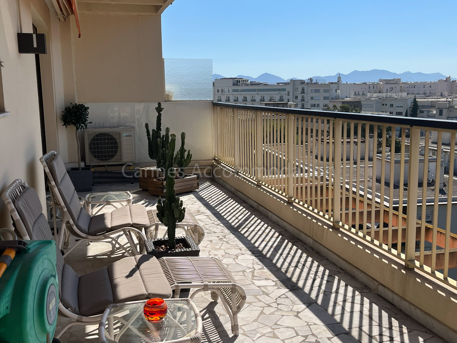 L’atout majeur de l’appartement est son immense terrasse avec une splendide vue sur la ville de Cannes.