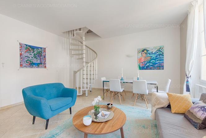 Ce spacieux duplex est situé en haut de la rue d’Antibes, agréable quartier commerçant bordé de jolies boutiques.