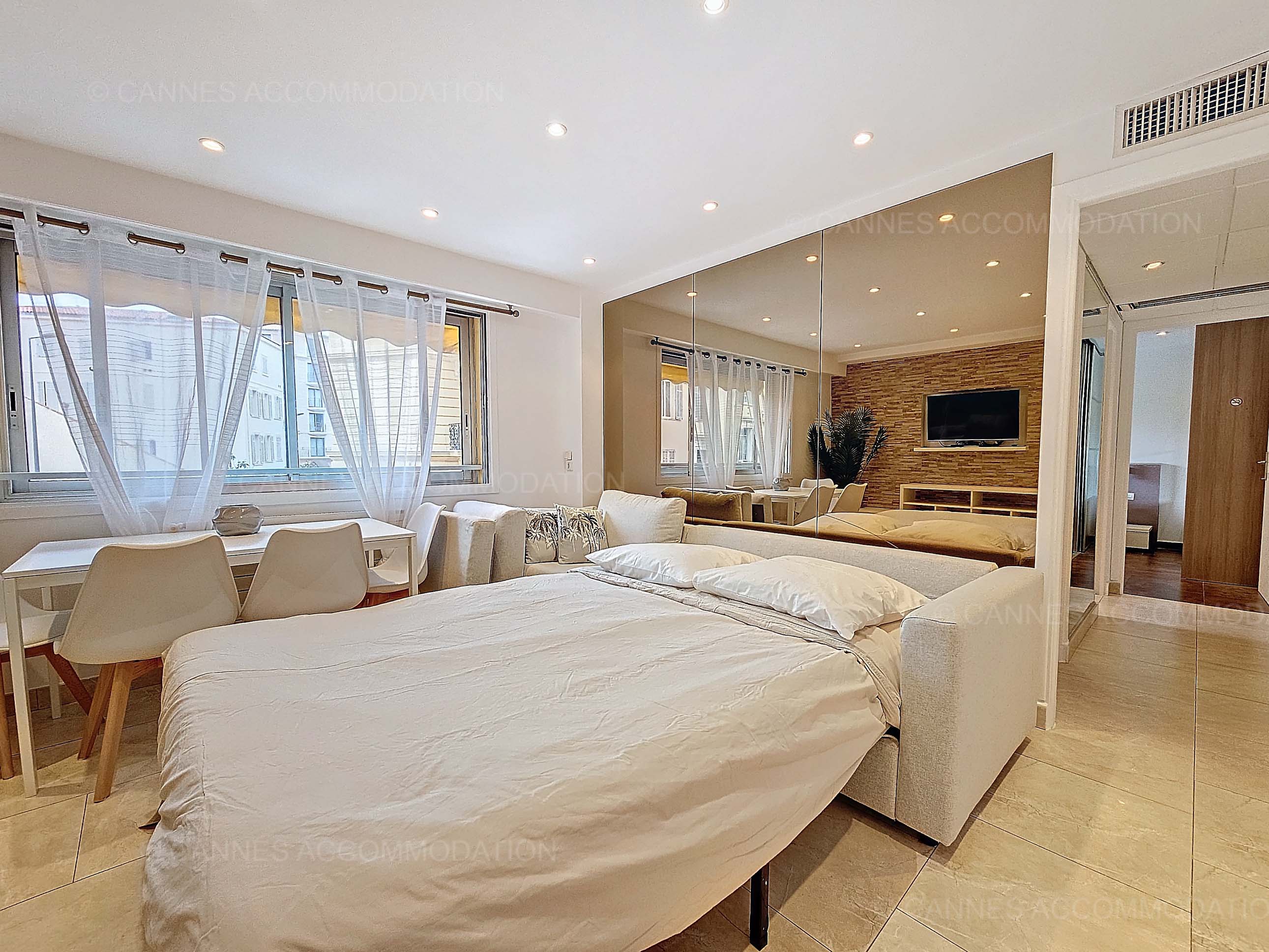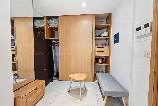 Ce joli deux pièces est situé rue Goujon, à 11 minutes à pieds du palais des festivals.