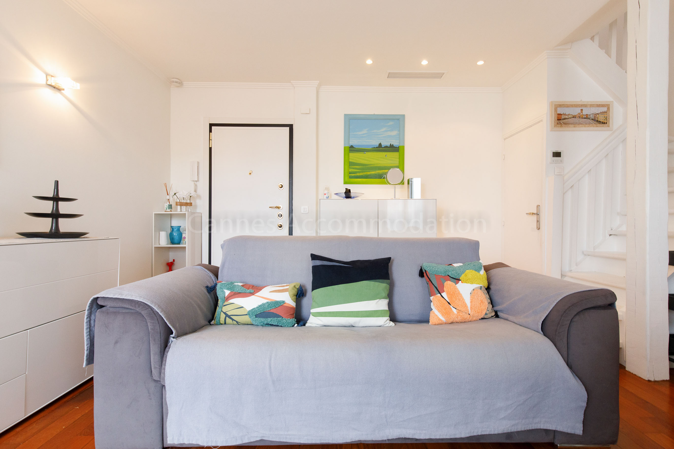 Ce très beau deux pièces en duplex est à seulement deux pas de la Croisette et à 7 minutes du Palais des Festivals.