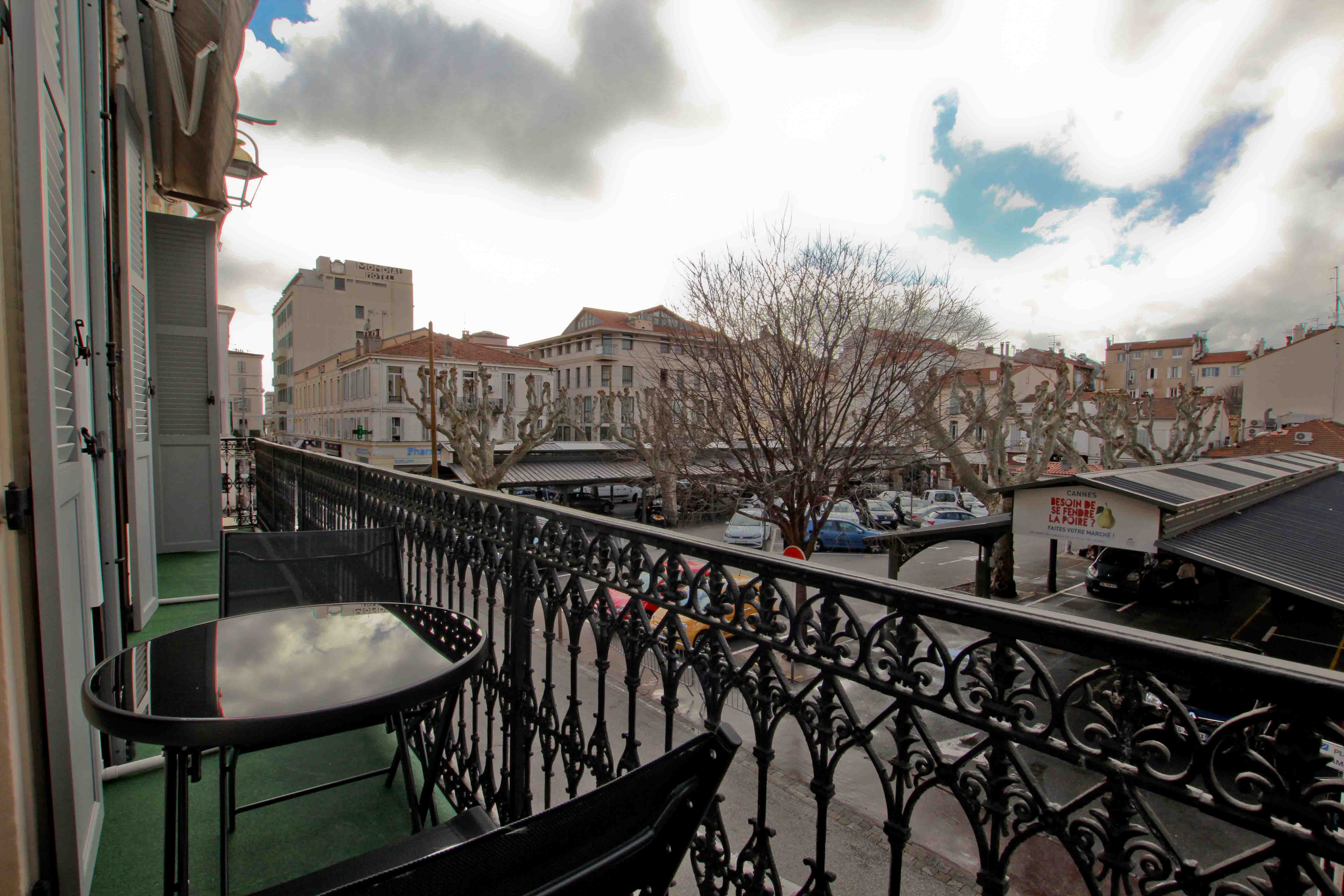 Situé en plein cœur de Cannes, au premier étage d’un immeuble ancien sans ascenseur, cet appartement bénéficie d’un emplacement privilégié face au marché Gambetta, dans un quartier vivant et central.
