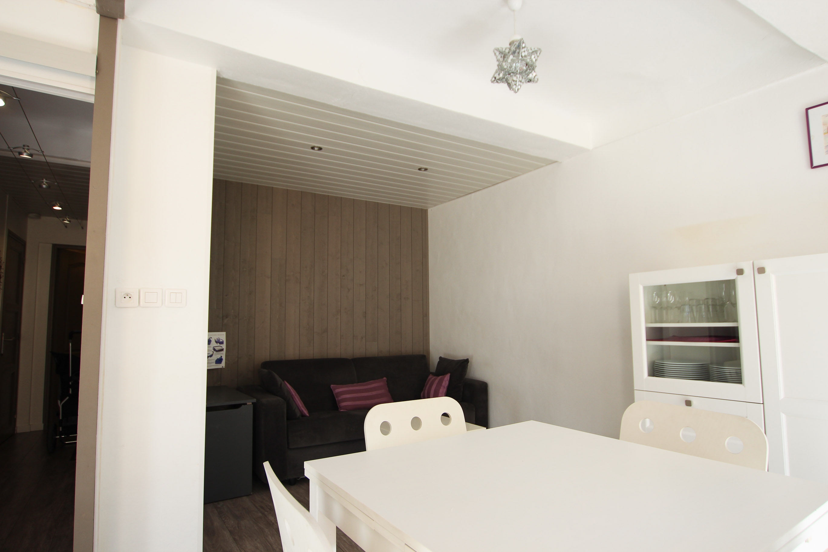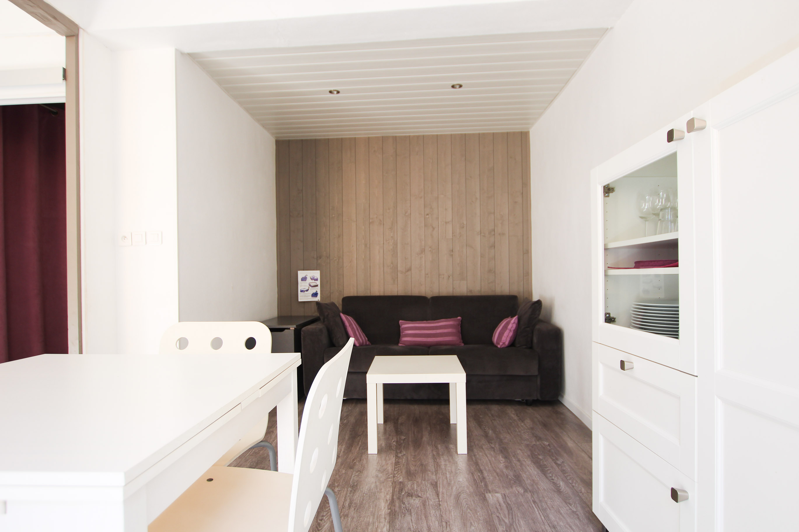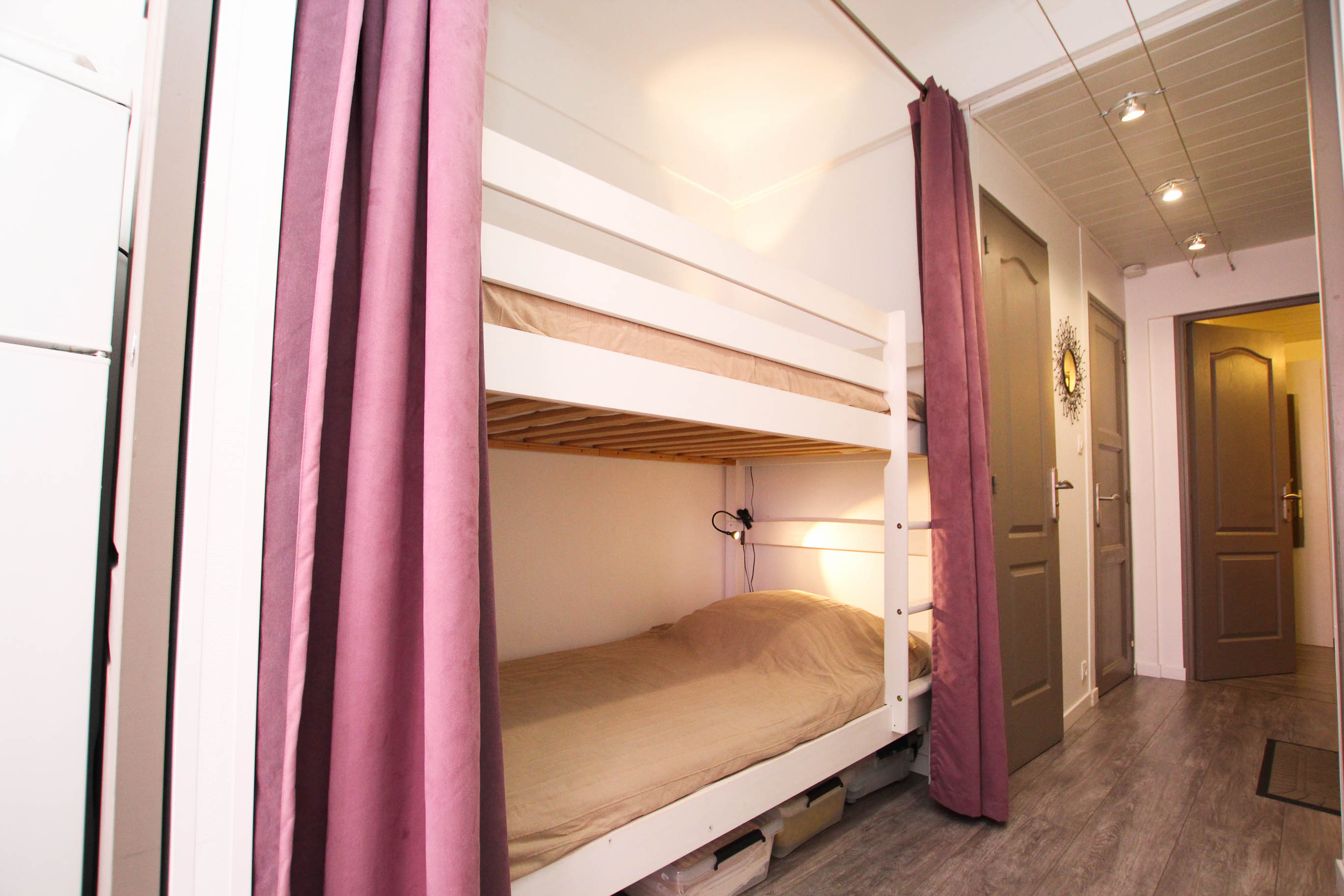 Joliment rénové et pensé pour vous recevoir le temps de votre séjour d’affaires, MAUVE est un appartement particulièrement fonctionnel. L’entrée dessert une chambre indépendante avec un lit double et une salle de douche privative, un wc séparé et un emplacement avec deux lits superposés discrets si jamais vous venez accompagnés ou en famille. Très bien agencée, la pièce principale se compose d’une cuisine toute équipée, ouverte sur un agréable coin salle à manger et un salon dont le canapé est convertible.